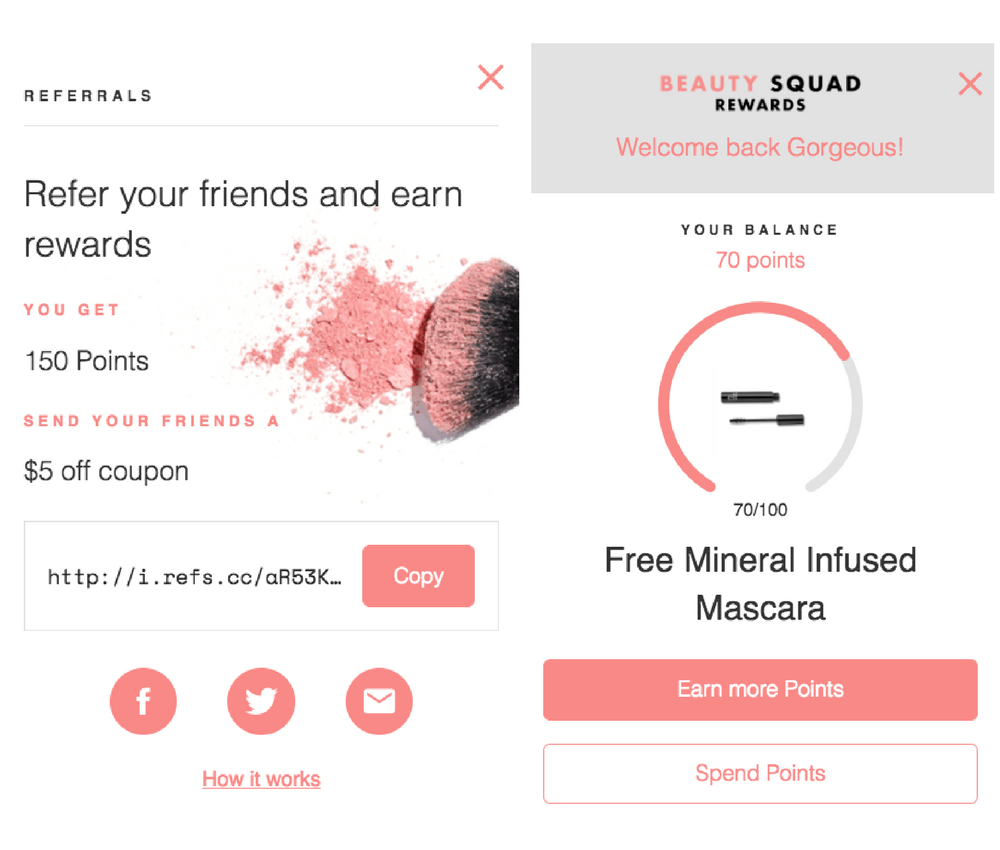 e.l.f. put this strategy to work in their Beauty Squad program. After just one successful referral, I would have enough points to redeem a number of different products, including mineral infused mascara and a contouring brush. Not only are these rewards irresistible to their target audience, but they’re also relatively easy to earn, making referrals an even more appealing way to engage with the cosmetics brand.
