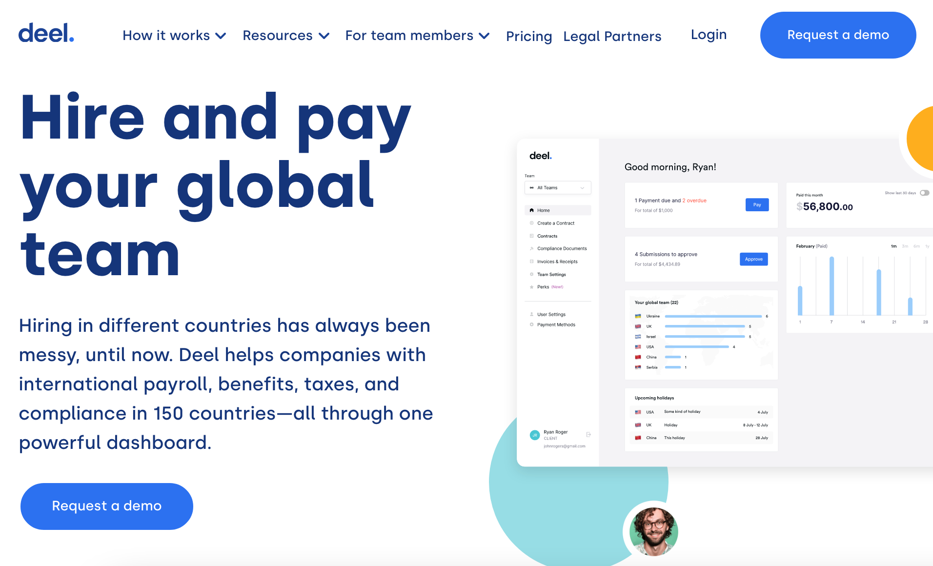 Deel handles everything. The paperwork, the back and forth, benefits, taxes, compliance—Deel is on the ball. It has made working and getting paid a far less painful experience for all of our international employees.